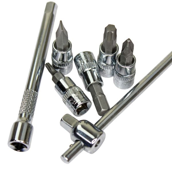 21 Bit Sockets: SL 4, 5.5, 7 HEX 3, 4, 5, 6, 7, 8 PH 1, 2, 3 PZ 1, 2, 3 Torx T10, 15, 20, 25, 30, 40