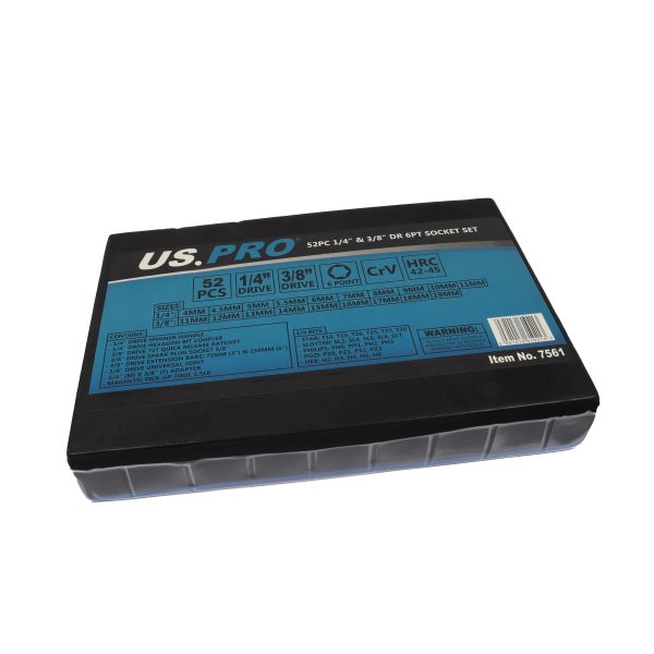 52PC 1/4" & 3/8" DR 6PT SOCKET SET IN EVA US PRO